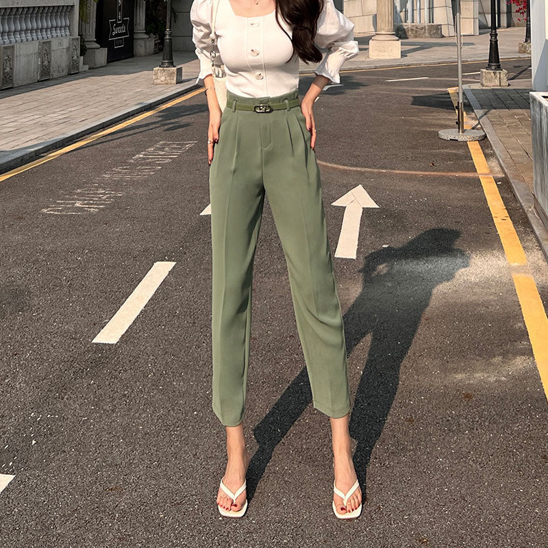 Product Details: Fabric name: Chemical fiber blended Main fabric composition: Polyester The content of main fabric components: 51%-70% Style: harem pants Pants type: tapered Length: trousers Color: green, black Size Information: Size: S, M, L, XL Package Contents: Polyester Ladies Trousers X1