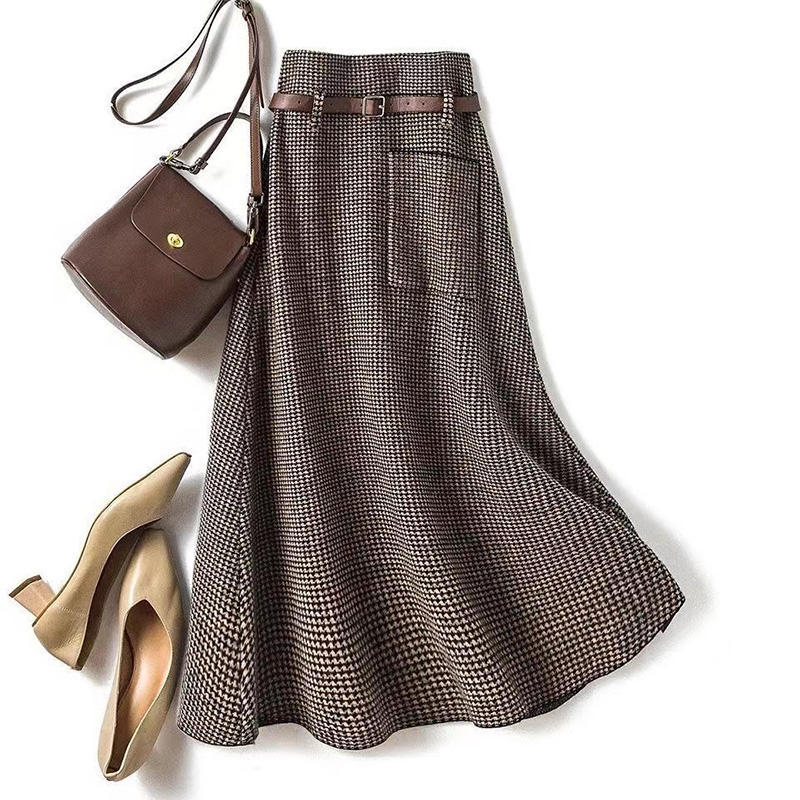 Women's Fashion Temperament Houndstooth A-Line Skirt